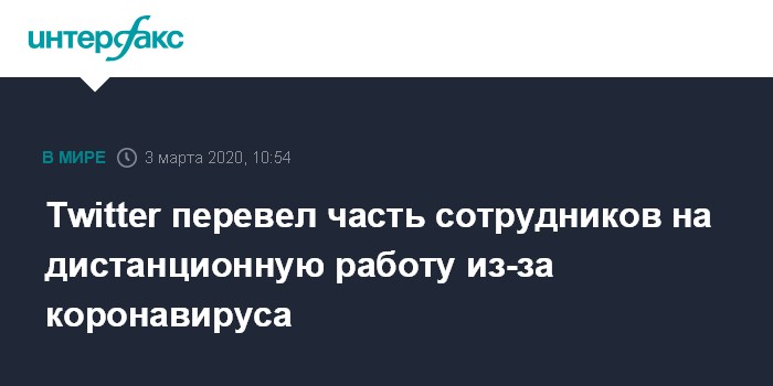 Москва. 3 марта. INTERFAX.RU - Чтобы снизить риски заражения новым коронавирусом сотрудникам Twitter в Гонконге, Японии и Южной Корее велели работать дистанционно. Это распоряжение опубликовано в блоге компании.