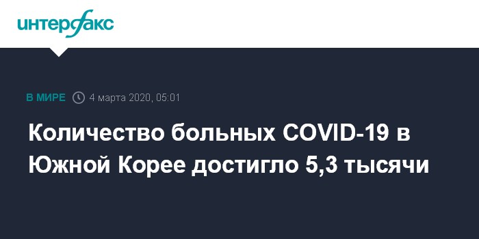 Количество больных COVID-19 в Южной Корее достигло 5,3 тысячи
