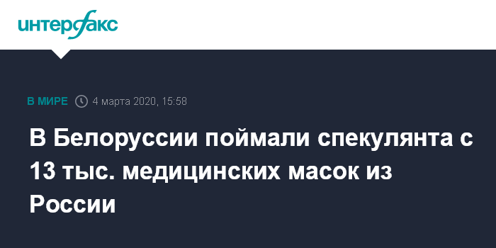 Москва. 4 марта. INTERFAX.RU - Задержан 26-летний минчанин, который незаконно торговал медицинскими масками различного наименования, сообщила пресс-секретарь МВД Белоруссии Ольга Чемоданова в своем телеграм-канале в среду.