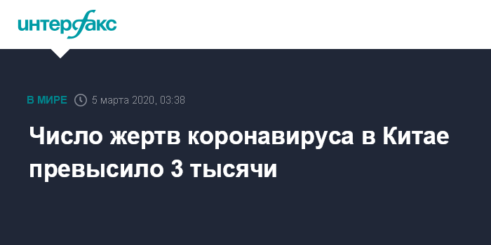 Число жертв коронавируса в Китае превысило 3 тысячи