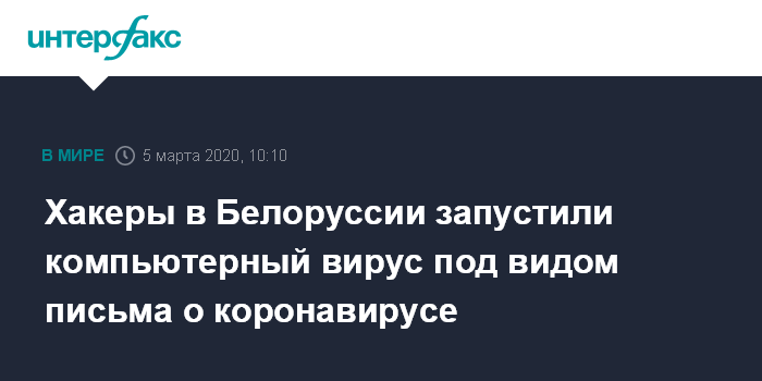 Хакеры в Белоруссии запустили компьютерный вирус под видом письма о коронавирусе
