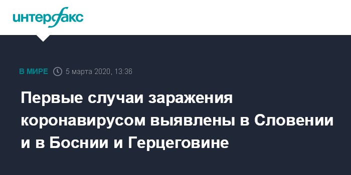 Первые случаи заражения коронавирусом выявлены в Словении и в Боснии и Герцеговине