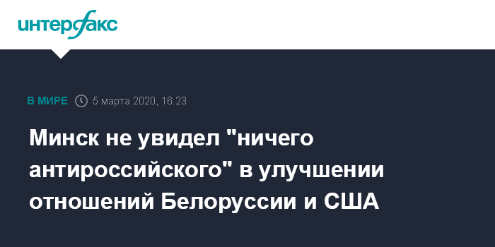 Минск не увидел "ничего антироссийского" в улучшении отношений Белоруссии и США