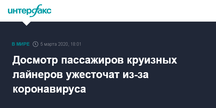 "Принимая во внимание здоровье и безопасность гостей и членов экипажа, а также жителей портовых городов и пунктов назначения круизных лайнеров по всему миру, CLIA ужесточает меры досмотра пассажиров перед посадкой на суда в связи с эпидемией коронавируса", - говорится в сообщении, опубликованном на сайте ассоциации.