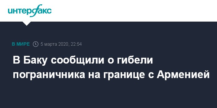 Москва. 5 марта. INTERFAX.RU - Государственная пограничная служба (ГПС) Азербайджана сообщила о гибели азербайджанского пограничника в результате нарушения режима прекращения огня со стороны Армении.