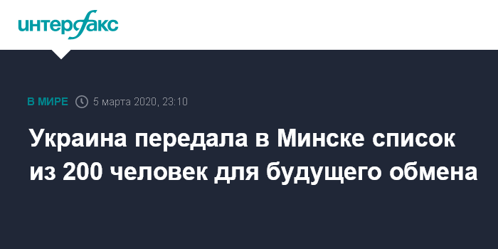 Москва. 5 марта. INTERFAX.RU - Украинская сторона передала в Минске список из 200 человек, которых Киев хотел бы получить в рамках обмена, заявил президент Украины Владимир Зеленский.