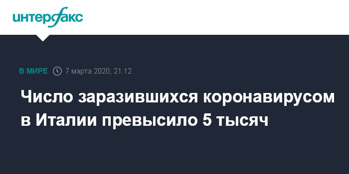 Число заразившихся коронавирусом в Италии превысило 5 тысяч