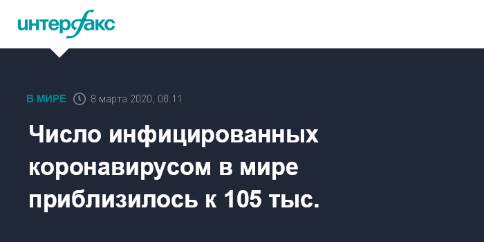 Число инфицированных коронавирусом в мире приблизилось к 105 тыс.