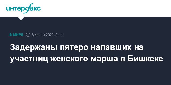 По сообщениям местных СМИ, 8 марта агрессивные мужчины в колпаках и масках напали с кулаками на участниц мирной акции против насилия над женщинами и детьми. Журналисты подчеркивали, что прибывшие милиционеры задержали девушек-активисток, а не нападавших. Впоследствии в милиции Бишкека назвали акцию несанкционированной и заявили, что задержаны были лица "с обеих сторон" конфликта.