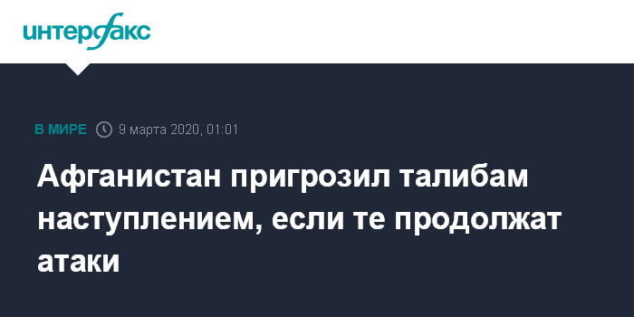 Москва. 9 марта. INTERFAX.RU - Министр обороны Афганистана Асадулла Халид заявил, что если боевики исламистского движения "Талибан" (запрещено в РФ) не прекратят атаки до конца недели, правительственные силы перейдут из обороны в наступление.