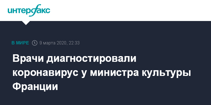 Врачи диагностировали коронавирус у министра культуры Франции