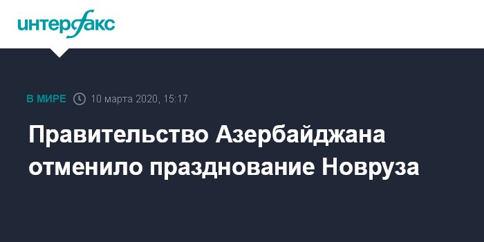 Москва. 10 марта. INTERFAX.RU - Правительство Азербайджана отменило в Баку и других регионах проведение в третьей декаде марта торжеств по случаю праздника Новруз, сообщил оперативный штаб по борьбе с коронавирусом в республике.