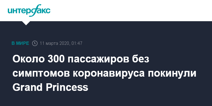 Около 300 пассажиров без симптомов коронавируса покинули Grand Princess
