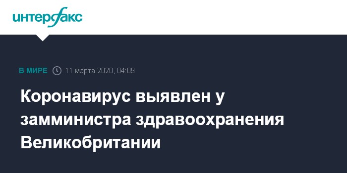 Коронавирус выявлен у замминистра здравоохранения Великобритании