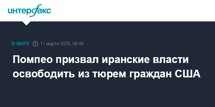 Москва. 11 марта. INTERFAX.RU - Госсекретарь США Майк Помпео призвал власти Ирана из гуманитарных соображений незамедлительно освободить из иранских тюрем американских граждан.