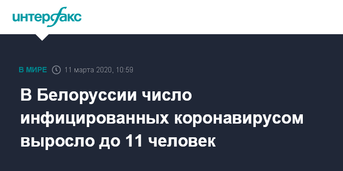 В Белоруссии число инфицированных коронавирусом выросло до 11 человек