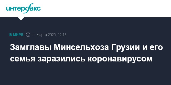 Москва. 11 марта. INTERFAX.RU - Медики подтвердили заражение коронавирусом COVID-19 заместителя министра сельского хозяйства и защиты окружающей среды Грузии Юрия Нозадзе, сообщила в среду пресс-служба министерства.