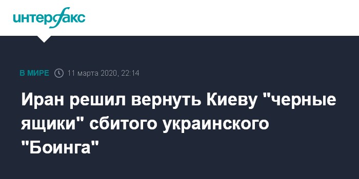 Москва. 11 марта. INTERFAX.RU - Иран согласился вернуть Украине бортовые самописцы самолета авиакомпании "Международные авиалинии Украины" (МАУ), сбитого в районе Тегерана 8 января, сообщил в твиттере посол Украины в Канаде Андрей Шевченко.