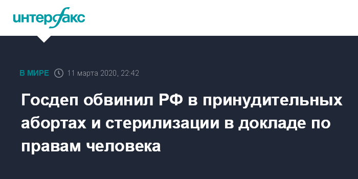 Госдеп обвинил РФ в принудительных абортах и стерилизации в докладе по правам человека