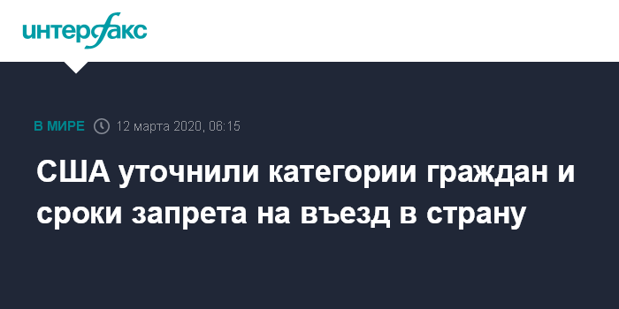 Ранее президент США Дональд Трамп в своем обращении к гражданам объявил о решении запретить с 13 марта поездки в Соединенные Штаты из Европы, кроме Великобритании.