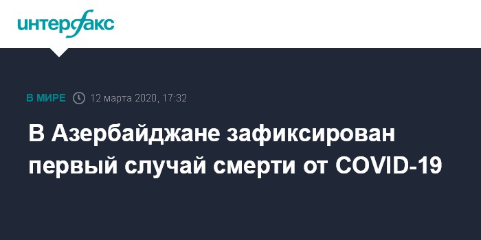 Москва. 12 марта. INTERFAX.RU - В Азербайджане зарегистрирован первый случай смерти от коронавируса, сообщил в четверг оперативный штаб при кабинете министров.