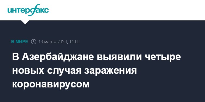 Москва. 13 марта. INTERFAX.RU - У четырех граждан Азербайджана, вернувшихся из Ирана и Италии, обнаружен коронавирус COVID-19, сообщает оперативный штаб при кабинете министров.
