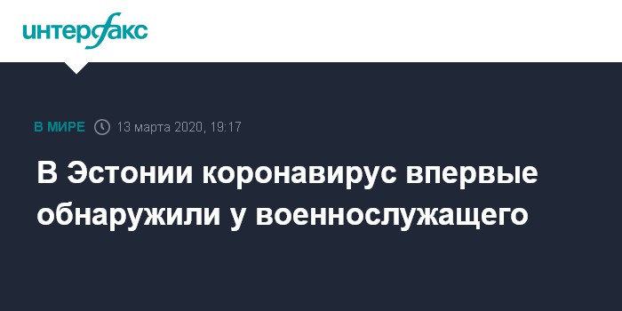 Москва. 13 марта. INTERFAX.RU - В Эстонии коронавирус впервые обнаружили у военнослужащего.