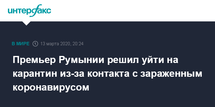 Москва. 13 марта. INTERFAX.RU - Временно исполняющий обязанности премьер-министра Румынии Людовик Орбан решил отправиться на карантин после контакта с сенатором, у которого выявили коронавирус, сообщают в пятницу европейские СМИ.