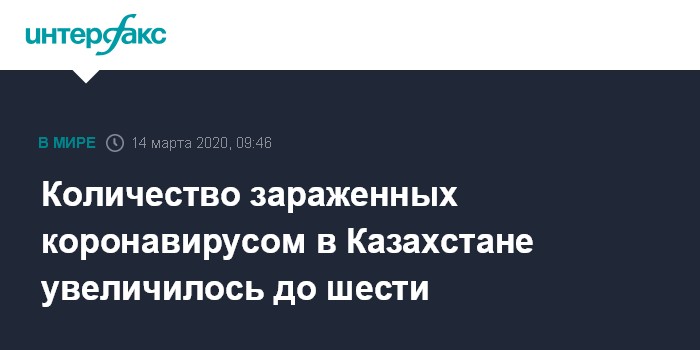 Москва. 14 марта. INTERFAX.RU - В Казахстане зарегистрировано шесть случаев заражения коронавирусом, сообщил официальный представитель Минздрава республики Диас Ахметшарип.