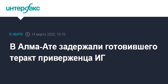 Москва. 14 марта. INTERFAX.RU - В Алма-Ате задержан приверженец идеологии международной террористической организации "Исламское государство" (ИГИЛ, запрещена в РФ и Казахстане), готовивший теракт в дни празднования Наурыза, сообщила в субботу пресс-служба Комитета нацбезопасности Казахстана.
