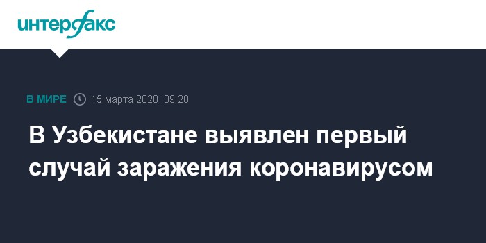 Москва. 15 марта. INTERFAX.RU - В Узбекистане установлен первый пациент с коронавирусом, сообщает министерство здравоохранения республики.