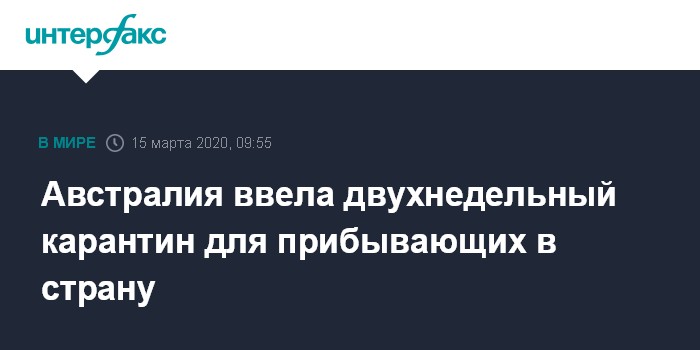 Москва. 15 марта. INTERFAX.RU - В Австралии вводят режим домашнего карантина на 14 суток для всех прибывающих в страну иностранцев и австралийских граждан, сообщает в воскресенье BBC News.
