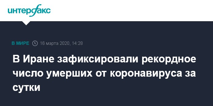 Москва. 16 марта. INTERFAX.RU - Число жертв коронавируса в Иране за сутки выросло на рекордный для страны показатель в 129 человек и составило 853 человека, сообщает в понедельник агентство Associated Press.