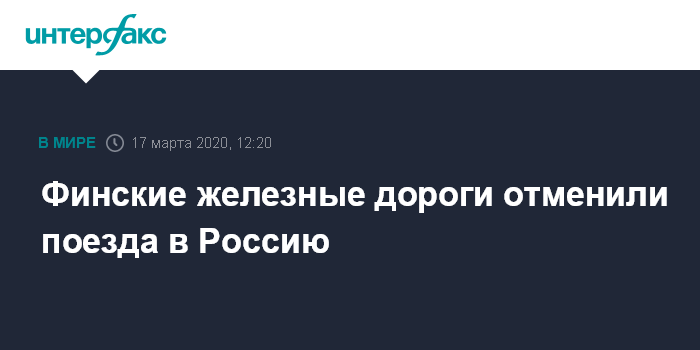 Москва. 17 марта. INTERFAX.RU - Финская железнодорожная компания VR Group с 19 марта прервет пассажирское сообщение с Россией из-за коронавируса как минимум до 13 апреля.