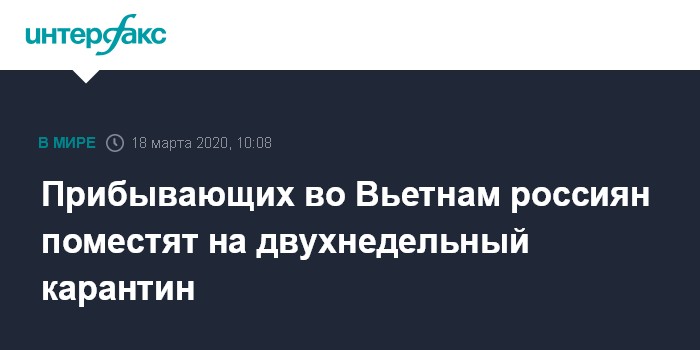 На карантин будут помещаться все иностранцы, прибывающие из США, всех стран Европы и Юго-Восточной Азии, говорится в сообщении дипмиссии в среду. В посольстве призвали учитывать эти факторы при планировании поездки во Вьетнам.