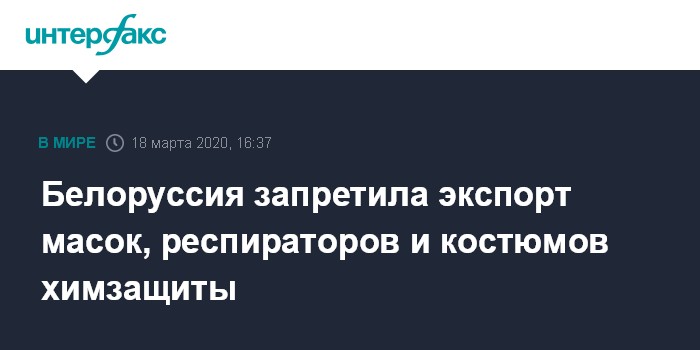 Белоруссия запретила экспорт масок, респираторов и костюмов химзащиты