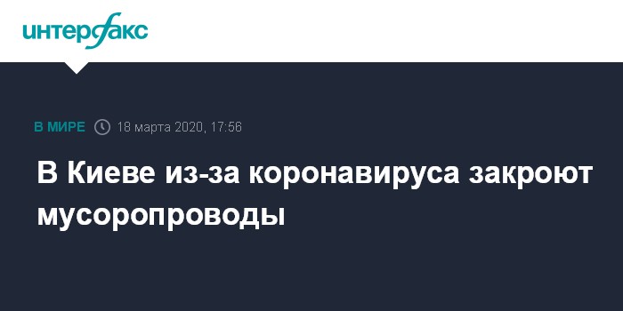 Москва. 18 марта. INTERFAX.RU - В Киеве по решению комиссии по вопросам техногенно-экологической безопасности и чрезвычайных ситуаций мусоропроводы будут закрыты в связи с распространением коронавируса, сообщил заместитель председателя Киевской городской государственной администрации Петр Пантелеев.