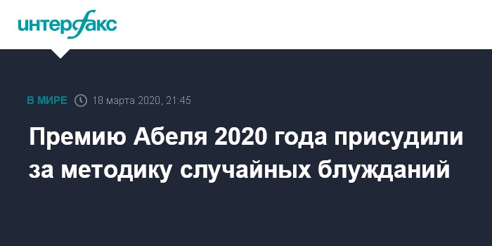 Премию Абеля 2020 года присудили за методику случайных блужданий
