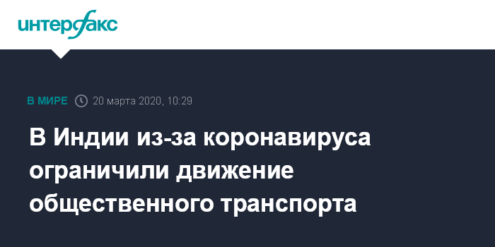 Москва. 20 марта. INTERFAX.RU - Власти Индии для борьбы с коронавирусом приостановили движение транспорта в некоторых частях страны, сообщает в пятницу телеканал BBC.