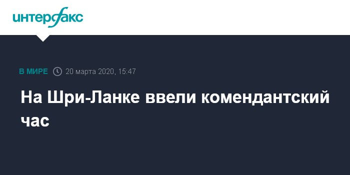 "Власти Шри-Ланки вводят в стране комендантский час, который продлится с 18:00 (по местному времени) 20 марта до 06:00 23 марта. Сохраняется возможность добраться до аэропорта города Коломбо для вылета. При себе нужно иметь маршрутную квитанцию (билет) и паспорт", - сообщает посольство РФ в Коломбо.