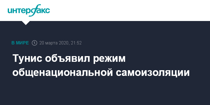 Тунис объявил режим общенациональной самоизоляции