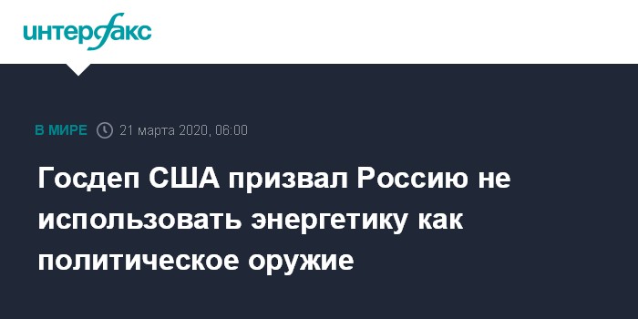 Госдеп США призвал Россию не использовать энергетику как политическое оружие