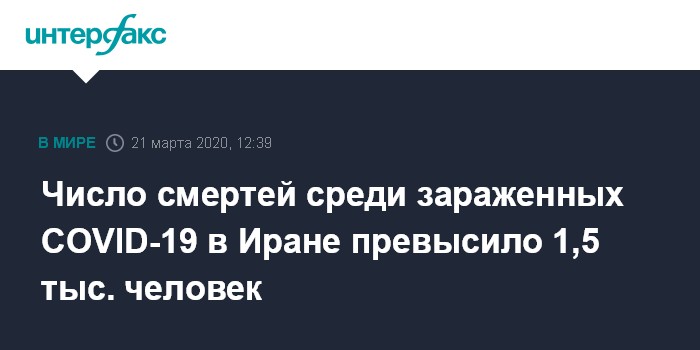 Число смертей среди зараженных COVID-19 в Иране превысило 1,5 тыс. человек