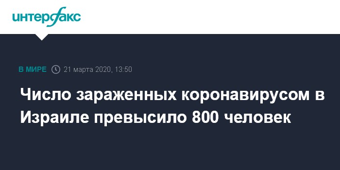 Число зараженных коронавирусом в Израиле превысило 800 человек