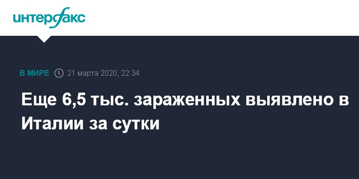 Еще 6,5 тыс. зараженных выявлено в Италии за сутки