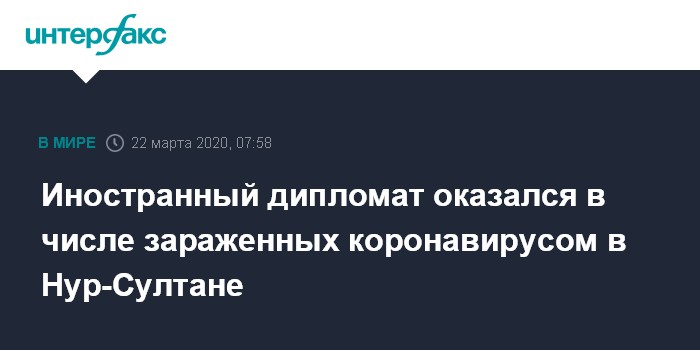 Москва. 22 марта. INTERFAX.RU - Иностранный дипломат, прибывший из Лондона, оказался в числе зараженных коронавирусом в Нур-Султане, сообщил официальный представитель Минздрава Казахстана Диас Ахметшарип.