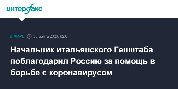 Начальник итальянского Генштаба поблагодарил Россию за помощь в борьбе с коронавирусом