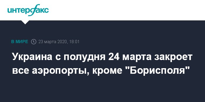 Украина с полудня 24 марта закроет все аэропорты, кроме "Борисполя"