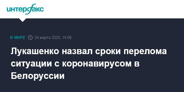 Лукашенко назвал сроки перелома ситуации с коронавирусом в Белоруссии
