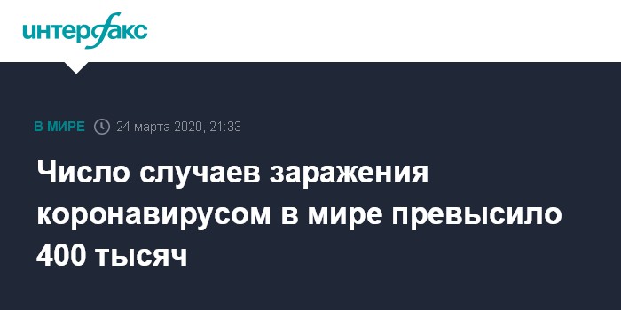 Число случаев заражения коронавирусом в мире превысило 400 тысяч